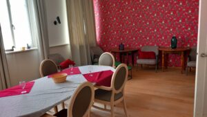 L’alimentation est adaptée aux besoins et à l’état de santé des résidents (régimes alimentaires, repas servis hachés ou mixés). Le personnel de salle à manger suit des formations régulières (service, nutrition, bientraitance). Tout est mis en œuvre pour offrir un service personnalisé et respectueux de la santé de chaque résident.