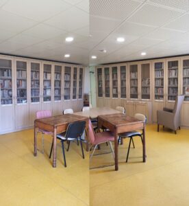 Elle est ouverte le mardi de 14h à 15h30. Elle est tenue par des résidents et des bénévoles et dispose de livres à gros caractères. Elle se situe au 2ème étage du Bâtiment de liaison entre Sainte Agathe et Sainte Marie.